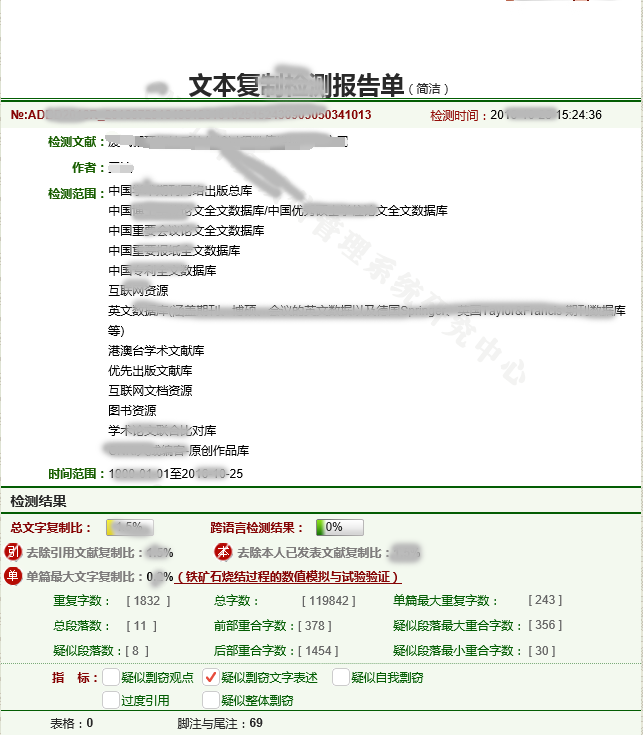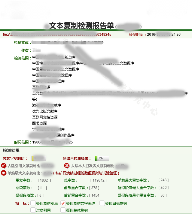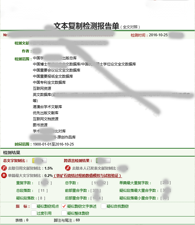 學(xué)術(shù)不端查重系統(tǒng)檢測報(bào)告單樣例
